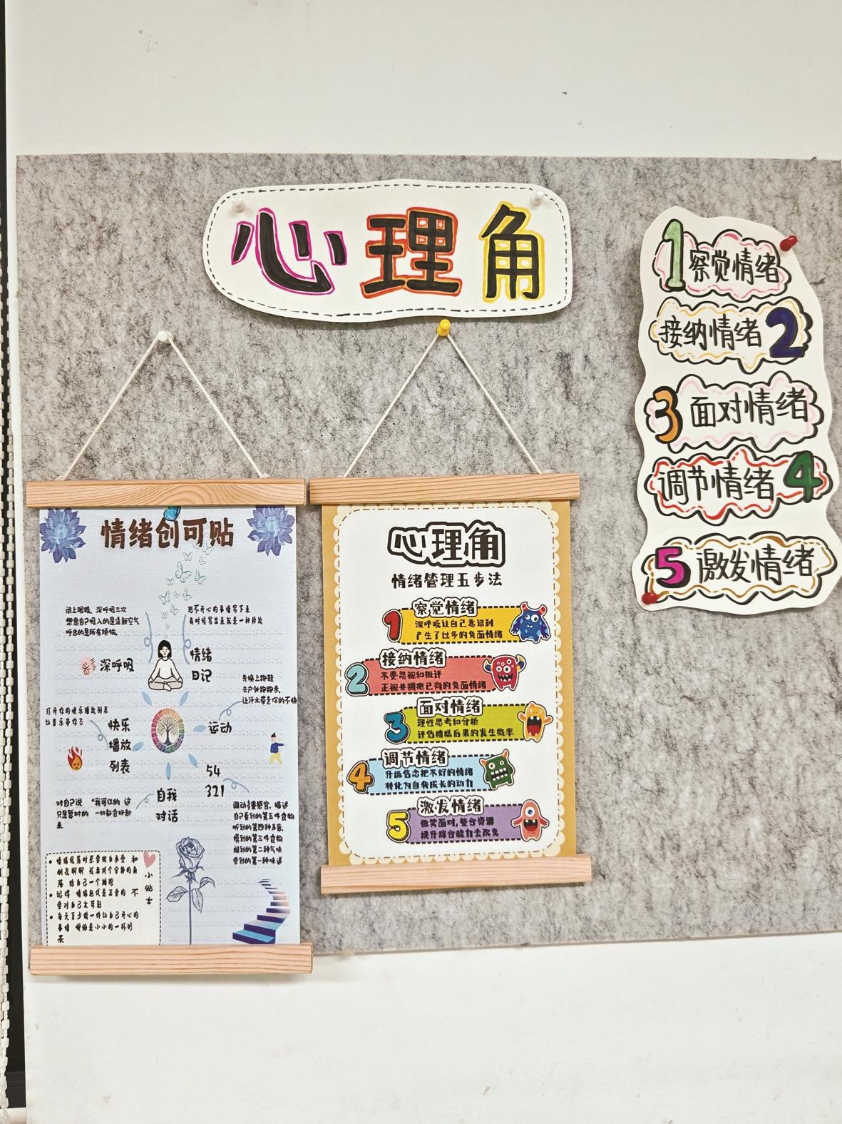 江北中心学校每年定期举行“卓美教室”评比,于细微之处见证心灵之美。有的班级在教室前方放置了学生创作的“高光时刻”快乐杯,学生和老师可以在“快乐杯”中投入赞美与肯定的话语,记录某个学生的高光时刻;有的班级在图书角边藏了“心灵树洞”,让每一份心声都被珍视;还有些班级在毛毡板展示了“情绪创可贴”,它如同一位全天在岗的“无声心理顾问”,用提供具体可操作的方法替代了说教。这些小设计并非宏大的工程,却春风化雨般嵌入学生的日常,于无声处抚慰着成长的心灵。