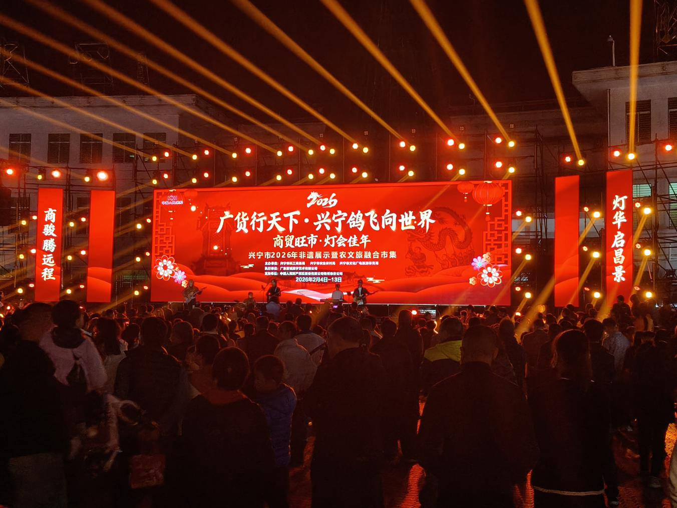 2月13日晚,为期十天的“广货行天下·兴宁鸽飞向世界”暨“商贸旺市·灯会佳年”——兴宁市2026年农文旅融合文明集市活动,在明珠文化广场圆满落下帷幕。本次活动以“广货行天下”春季行动为引领,深度融合兴宁“上灯”非遗,成功打造了一个集文化体验、商品展销与休闲消费于一体的新春综合性平台。