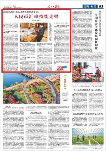 中国人民银行近期发布的《2025年第四季度中国货币政策执行报告》指出,坚持以市场供求为基础、参考一篮子货币进行调节、有管理的浮动汇率制度,保持汇率弹性,发挥汇率调节宏观经济和国际收支自动稳定器功能,强化预期引导,防范汇率超调风险,保持人民币汇率在合理均衡水平上的基本稳定。